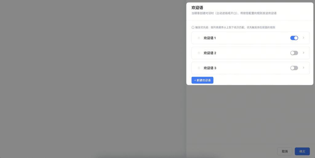 - AI客服默认不发送欢迎语,欢迎语需另行配置